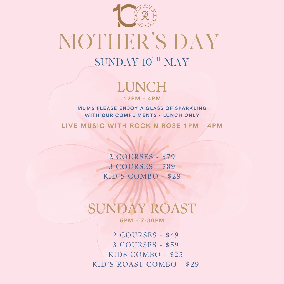 Bookings are essential — reserve your table now and make this Mother’s Day one to remember.
